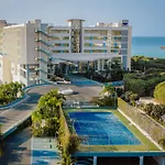 The luxury Nissiblu Beach Resort Ayia Napa, located 2.6 km from Monastery of Ayia Napa in an entertainment neighbourhood, highlights 4 lounges. Situated a stone's throw from Stathis Shopping center, this 5-star smoke-free hotel has an à la carte restaurant, a heated pool and a tropical garden.